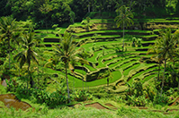 Rice fields terraces make a big impression. Cultivated by the locals in the traditional way they are one of the wonders of Bali. They are regularly flooded with waters form mountain latkes, like Bratan. The timing is determined by the local temples and is always associated with celebrations in the form of Hindu religious holidays. It is widely believed that some of the groups of Balinese terraces are used for over a thousand years. Locals use every piece of land for cultivation, and the individual plots can have sizes as small as 15 cm wide.